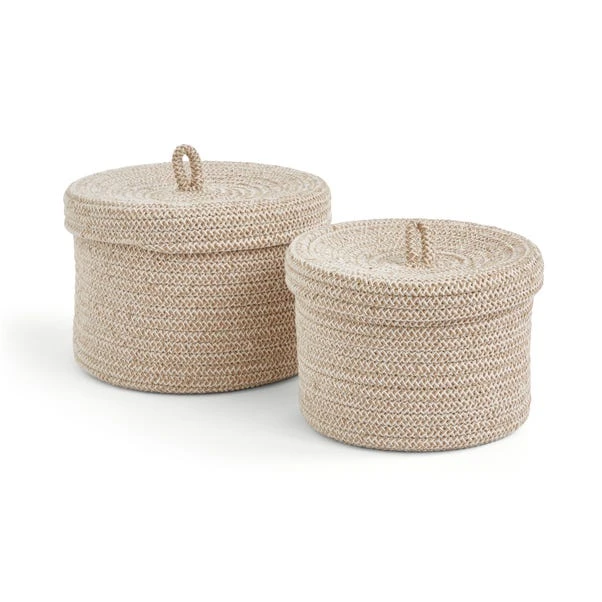 Organise with elegance using this set of two woven fabric baskets. Complete with lids for hidden storage, they add a decorative touch while keeping your space tidy and chic.