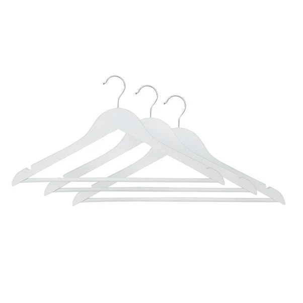 Supplied as a set of three, these coat hangers have been crafted from wood and make hanging clothes easy whilst organising your wardrobe space for added space saving.