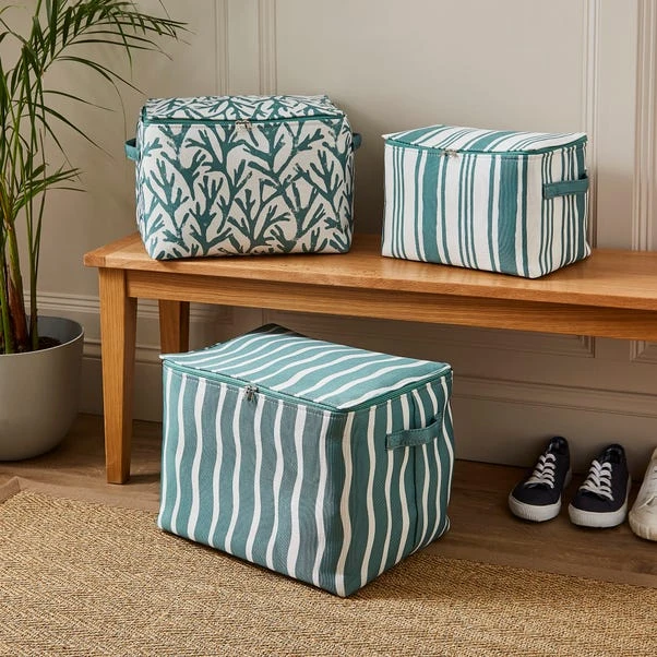 Stay organised in style with this set of three zip-closure coastal storage bags. Featuring contrasting seaside-inspired designs, these bags protect your belongings from dust while offering convenient portability with their sturdy handles. Foldable for compact storage, they are ideal for optimising space in your home.